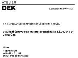 Projekt PBŘS – drobné stavební úpravy objektu pro bydlení ve Velké Úpě spočívající ve vybudování nového dřevěného schodiště a změny dispozice objektu (vybourání původních příček a vybudování nových sádrokartonových).