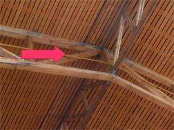Odborné posouzení střechy, jejichž nosnou část tvoří dřevěné příhradové vazníky a střešní krytina je z trapézových plechů. V interiéru vznikají vlhkostní poruchy i na nosných dřevěných prvcích. Při posudku nebyla zcela vyloučena kondenzace, ale za dominantní bylo stanoveno zatékání srážkové vody.