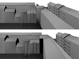 V centru Bystřice pod Hostýnem byla plánovaná dostavba skladu do dvorní části jednoho z domů. Ve studii jsme posuzovali vliv projektované přístavby na okolní pozemky a domy z hlediska oslunění a denního osvětlení. Studie prokázala vyhovující stav po výstavbě haly.
