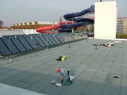 V době posudku byla stavba před dokončením a krytý bazén ještě nebyl v provozu. Při realizaci ploché jednoplášťové střechy nad bazénem se do skladby střechy dostala srážková voda. naším úkolem bylo stanovit vliv zabudované vlhkosti na součinitel prostupu tepla skladby střechy a stanovit průběh odpařování vlhkosti.