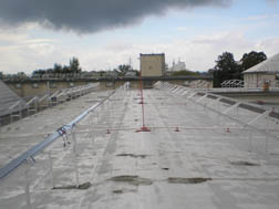 Pasportizace souboru 33 plochých i šikmých střech skladových hal před a po instalaci fotovoltaických panelů ve skladovém areálu.
