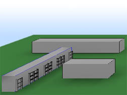 Při revitalizaci třípatrového bytového domu mají být z jihozápadu přistaveny lodžie, čímž dojde ke snížení úrovně denního osvětlení v obytných místnostech bytů. Výpočet prokázal, že i po výstavbě lodžií budou splněny požadavky na denní osvětlení dle ČSN 73 0580-2.