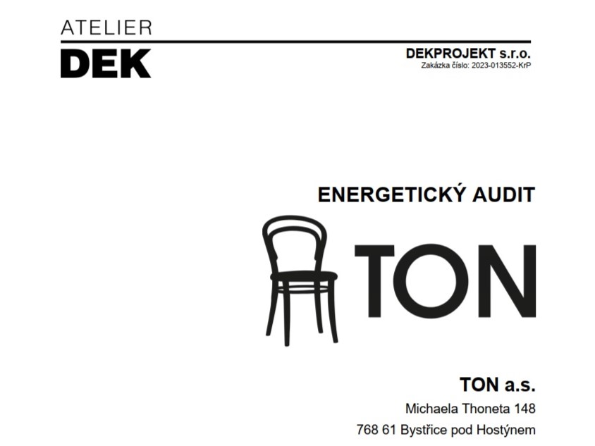 Pro firmu TON a.s. byl zpracován energetický audit, kterým bylo vyhodnoceno kompletní energetické hospodářství firmyy objektů. Zpracováním energetického auditu byl naplněn legislativní požadavek dle zákona o hospodaření energií.