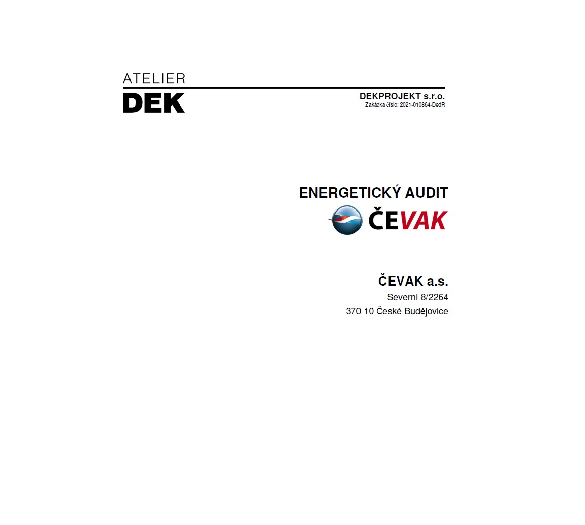 Energetický audit pro ČEVAK a.s. zahrnoval 52 objektů s roční spotřebou přes 194 MWh. Byla provedena analýza spotřeby, technologických systémů a měření. Výstupy sloužily k návrhu opatření pro zvýšení energetické efektivity ve firmě a optimalizaci systémů vytápění a osvětlení.