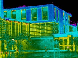 Novostavba administrativní budovy. Cílem termovizního měření bylo zdokumentovat provedenou stavbu a zhodnotit kvalitu provedených prací. Teplotní pole fasád s omítkou a kamenným obkladem bylo v ploše homogenní, což poukazuje na souvislou vrstvu tepelné izolace.