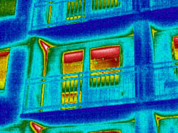 Vypracovali jsme energetickou studii a provedli snímání nezateplené fasády termovizní kamerou. Měření mimo jiné ukázalo, že mezi lodžiovými nosníky a obvodovými stěnami je použita poměrně kvalitní tepelná izolace a že při zateplování není třeba lodžiové nosníky obalovat tepelnou izolací.