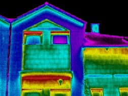 Rodinný dvojdům se šikmou střechou. Termovizní měření jsme provedli za účelem nalezení tepelných mostů a doporučení tloušťky tepelné izolace.