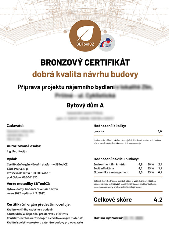 Nabízíme komplexní služby v oblasti certifikace budov dle systému SBToolCZ.