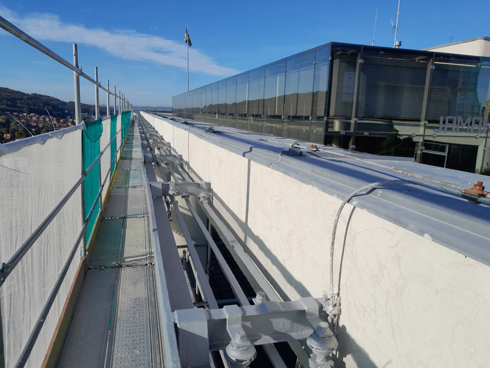 Projektová dokumentace opravy střešních plášťů (DSP, DPS, DZS) v rozsahu obvykle vyžadovaném stavebními úřady, vč. rozpočtu a výkazu výměr, statického posouzení stávající nosné konstrukce, projektu nové bleskosvodné soustavy a výkonu autorského dozoru. Součástí akce byla i veškerá inženýrská činnost spojená se stavebními úřady a DOSS.
