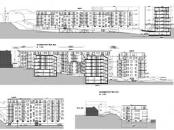 Komplex se skládá se 4 samostatných bytových domů. Každý dům je jedinečný co do tvaru půdorysu, tak také výšky. Vzhledem ke stísněné situaci si domy vzájemně stíní. Při konzultační činnosti byly upraveny dispozice bytů a fasády domů tak, aby bylo 100% bytů vyhovujících. Součástí studie bylo také posouzení vlivu na oslunění a denní osvětlení objektů okolní zástavby.